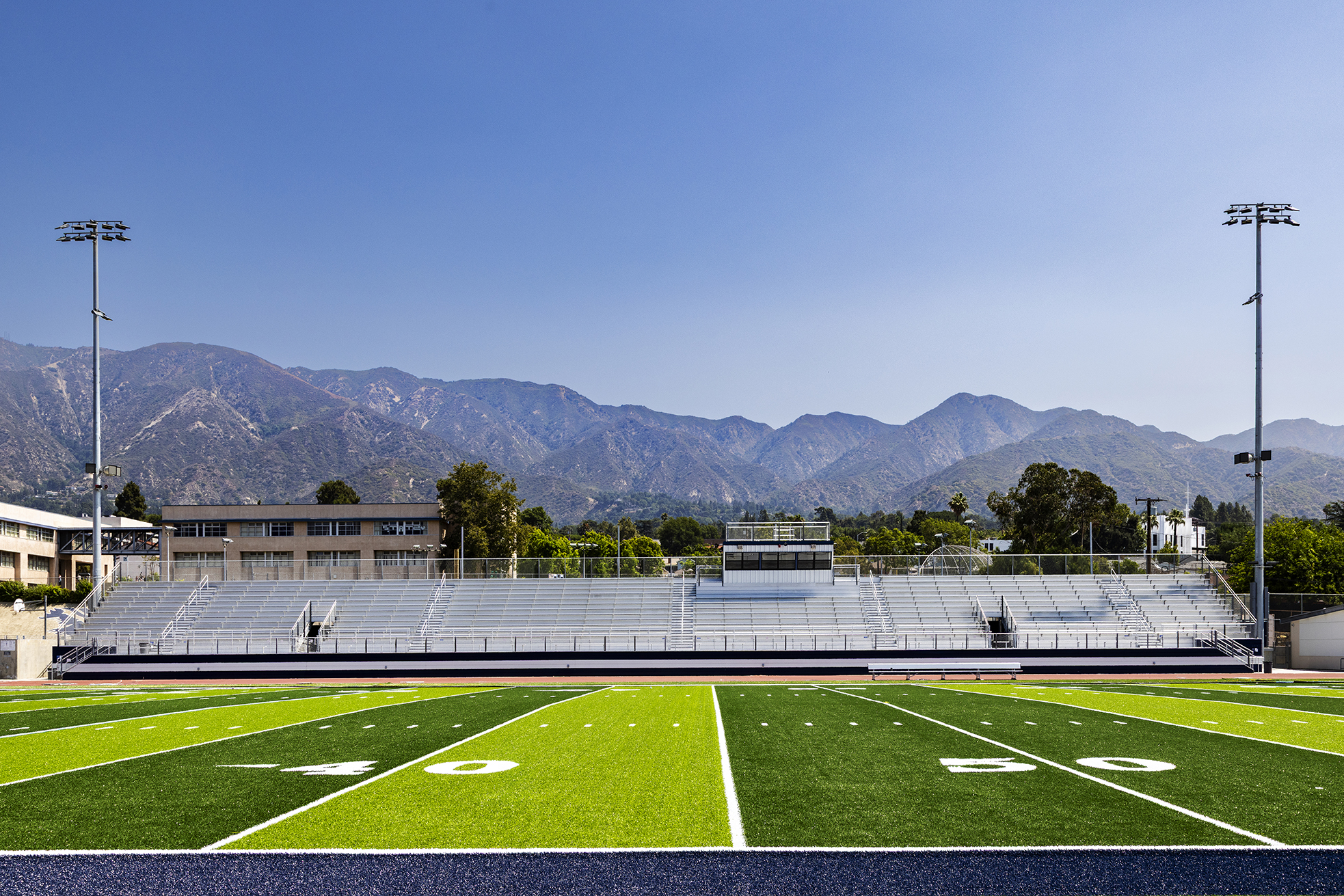 tBP/Architecture is pleased to announce the completion of the The Football Stadium project at Crescenta Valley High School! This project includes the installation of a 1,700-seat bleacher system with a press box, new sports lighting, and scoreboard. Additionally, tBP replaced the