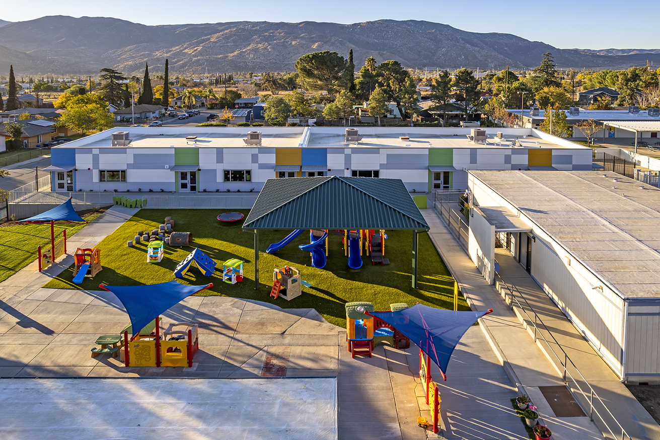 Banning Unified School District reaped the opportunity to garner State funding along with some of their own monies to fund 6 new TK and K classrooms on-site. The schedule called for students to be able to move into their new facilities in less than 18 months. A modular construction methodology was chosen to meet the challenging schedule while still creating customized, colorful, dynamic, and exciting buildings to engage and support the District’s youngest minds.