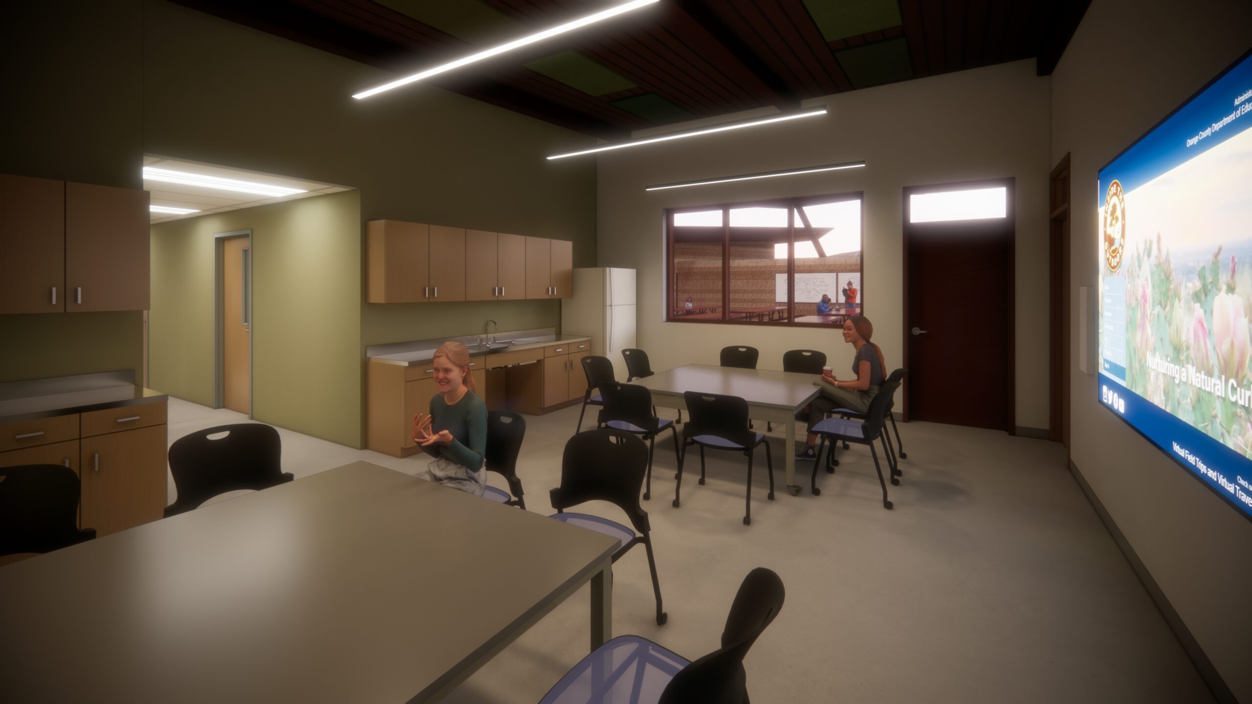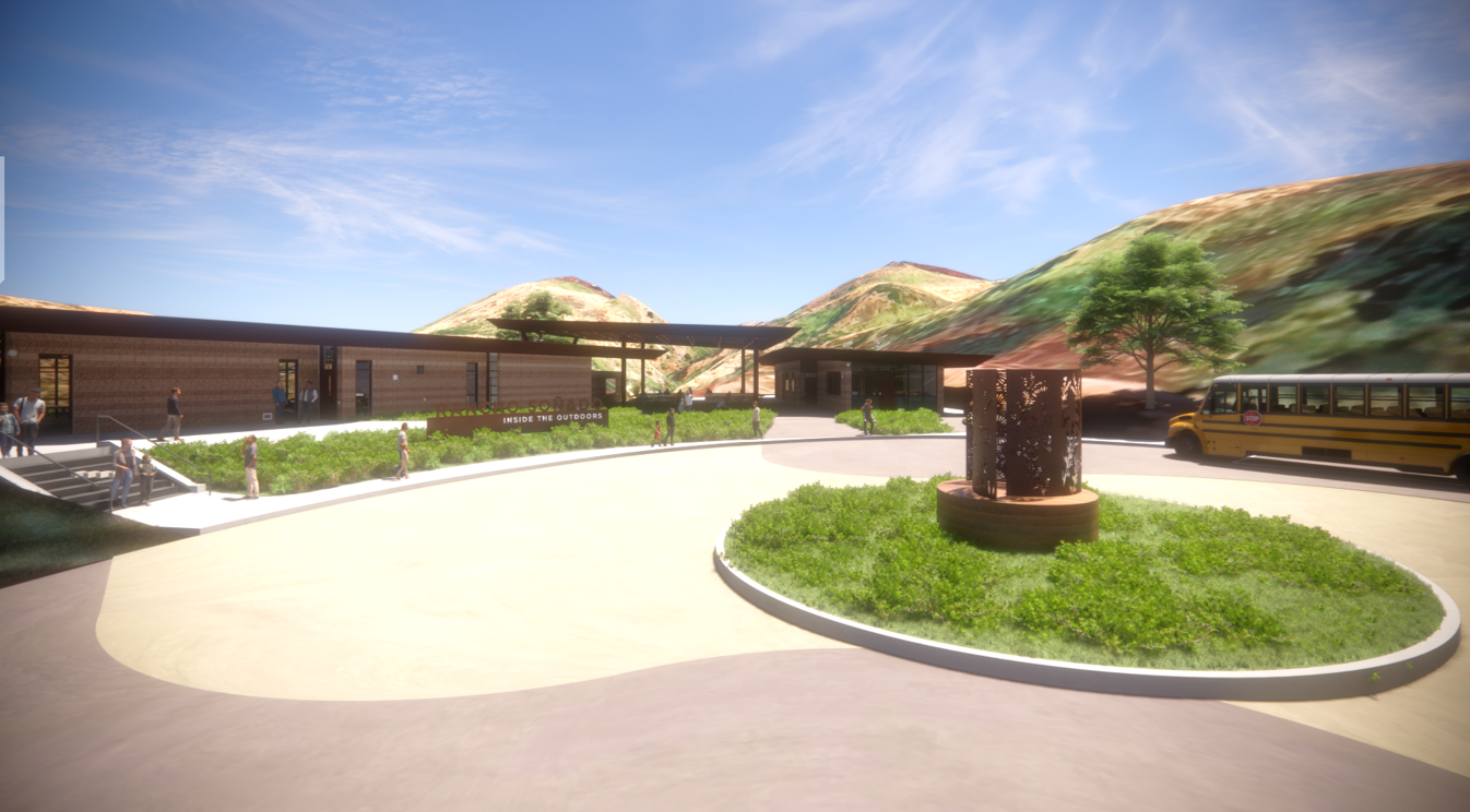 The most important design consideration was ensuring that when there is another fire, this facility will be protected. We adopted optimal fire resistive strategies beginning with providing defensible space. For the building, we are using concrete block structures with metal roofing. Narrow triple glazed windows and furred interior wall with rigid insulation attached to interior of the concrete block will inhibit heat from heating items to combustion temperatures within the building. The concrete block wall is designed with horizontal banding to blend with the site’s colorful stratified earthen layers and the roof system coloration approximates the red rusted metal of the local’s historical mine structures.
